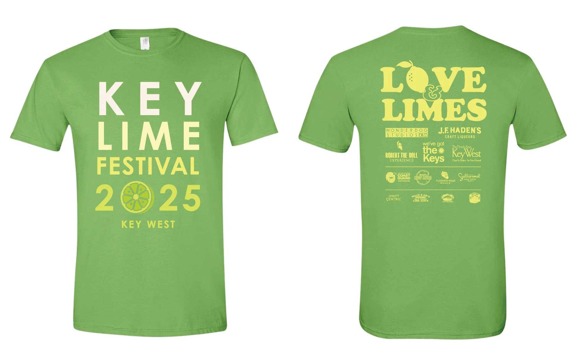 Categories: All Key Lime Festival All Key Lime Festival Lime Slice Parasol $30.00 Lime Slice Fan $15.00 2025 Key Lime Festival Tee Sale Price: $20.00 Original Price: $30.00 Sale Key Lime Festival T-Shirt $30.00 UV Long Sleeve Key Lime Festival Shirt $40.00 Slice of Pie Cap $30.00 Key Lime Festival Bandana $10.00 KLF Logo Dad Hat $30.00 Lady of Limes Women's Racerback Tank Pink $30.00 Our Lady of Limes Unisex T-Shirt from $30.00 Love & Limes & Goodtimes! Love & Limes & Goodtimes! Love & Limes & Goodtimes! America’s Favorite Citrus Celebration! July 1 - July 5, 2026Key West Florida! Visit the Festival Website